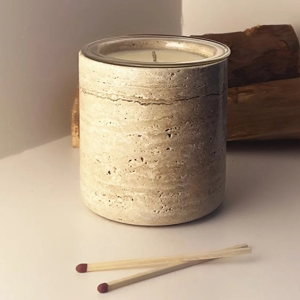 Vela Gloria is an artisan candle house, consciously crafted in the UK. Each candle is hand-poured into natural stone — Travertine or Onyx — designed to be kept, refilled, and relit for years to come.